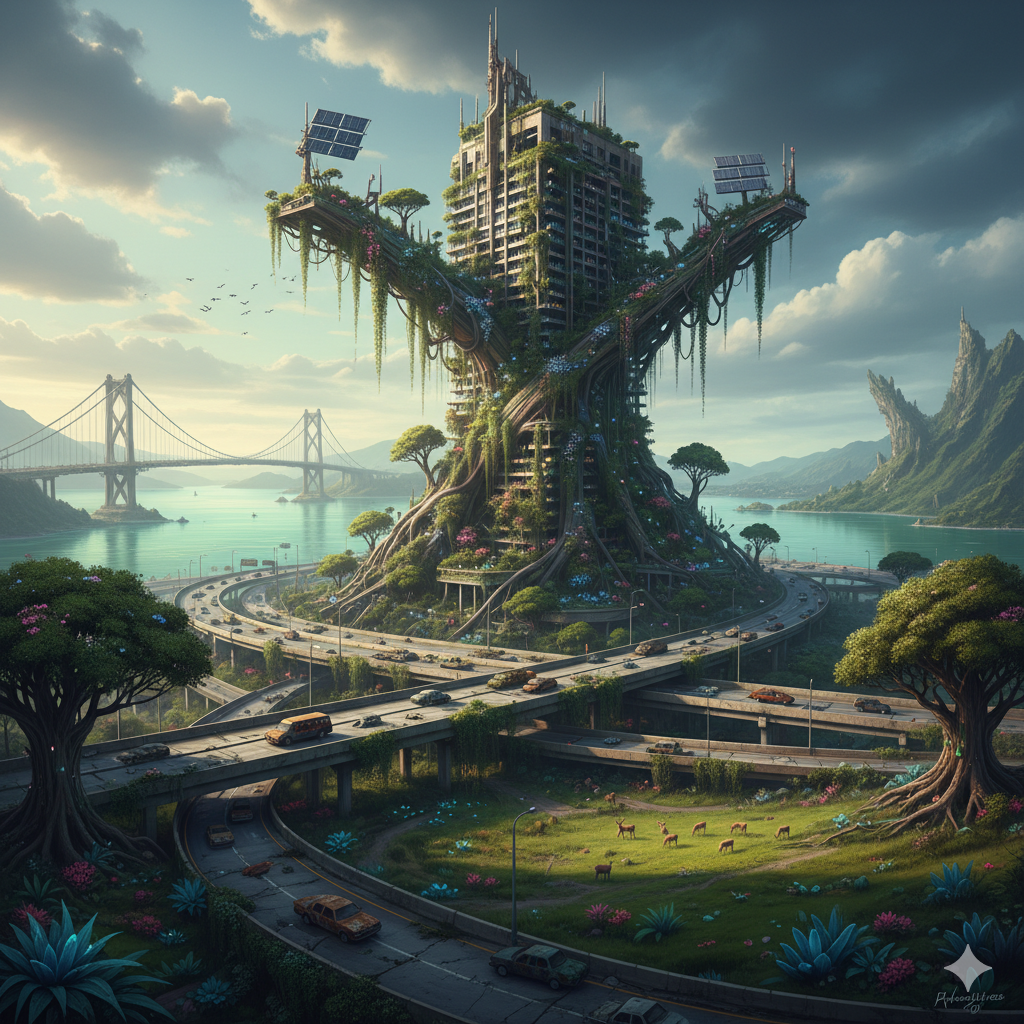Nel genere Post apocalittico l'uomo rinuncia ad approfondire il suo legame con la natura e la vede in maniera distaccata: l'esplorazione d'altrocanto non è più terrena ma intergallattica, così come l'attuale astrofisica teorizza che l'universo è un ologramma, l'esplorazione è virtuale.